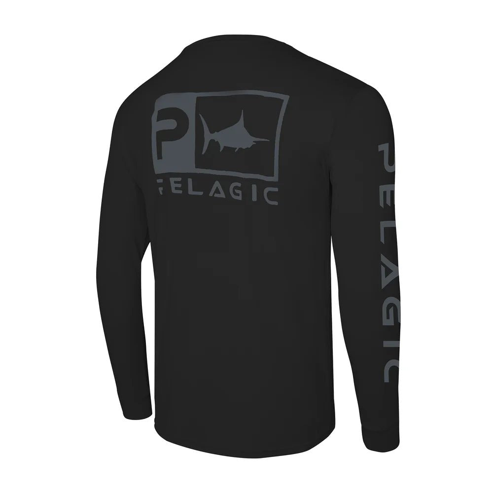 The Pelagic Aquatek "Icon" Men's Fishing Shirt in Black offers exceptional comfort and protection for anglers. Made from ultra-soft, 100% nylon fabric, it features 50+ UPF sun protection and quick-drying, 4-way stretch material for ease of movement. Its PFAS-free water and stain repellency keep you dry and clean, while strategic ventilation enhances airflow to keep you cool during long days on the water. Designed to support your fishing adventures in all conditions, this shirt combines performance and comfort seamlessly.