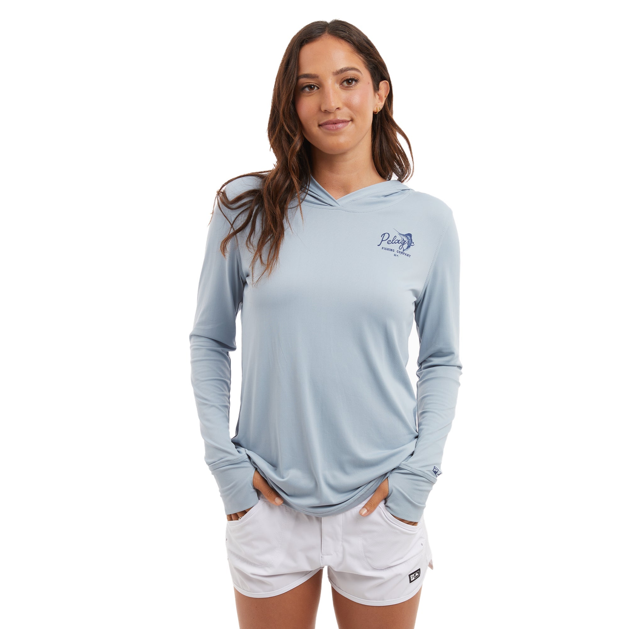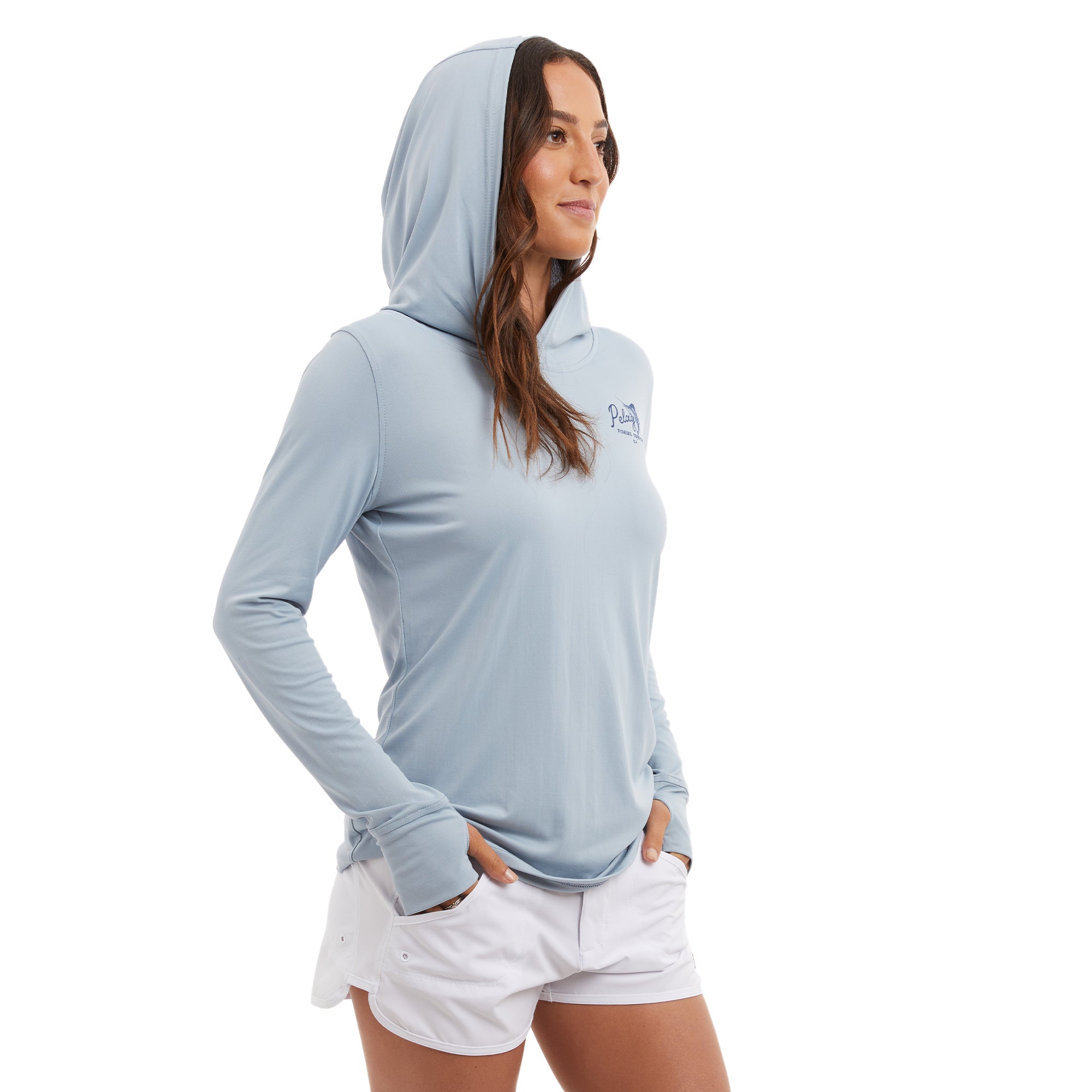 Catch some compliments while catching fish with the Pelagic Aquatek "Sail N Script" Women's Hooded Fishing Shirt. Stay cool, ventilated, and protected from the sun (UPF 50+) in this top-performing shirt designed for women who love to fish in style.
