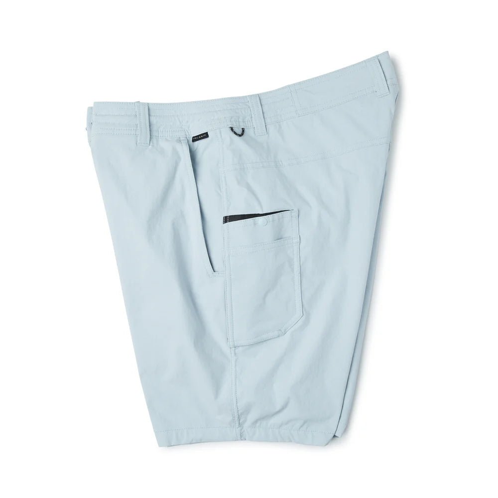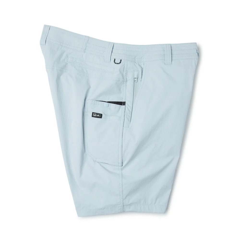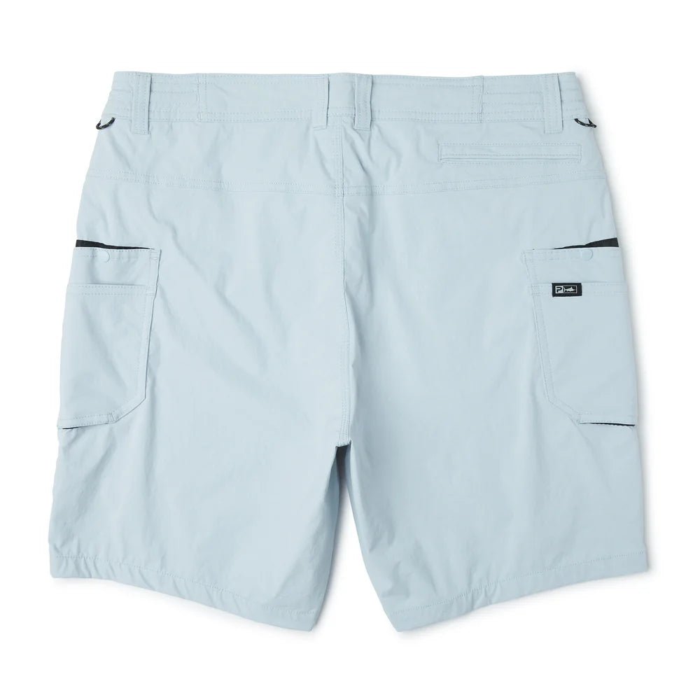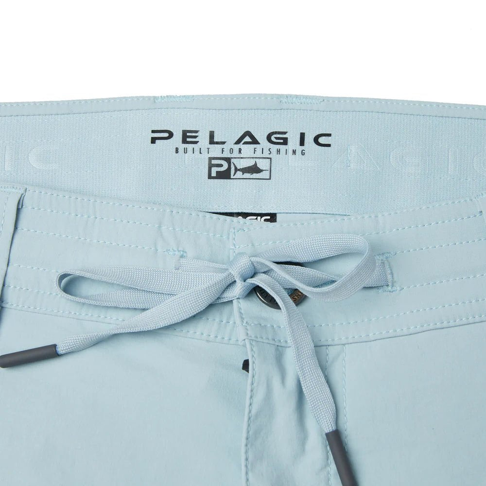 Introducing the Pelagic "Flyline" Men's Boardshorts 19" - Blue Fog. Designed for both function and style, these shorts feature quick dry fabric with water and stain repellency, reinforced plier pockets, and a tightlines waistband for ultimate comfort. Perfect for all your outdoor adventures.