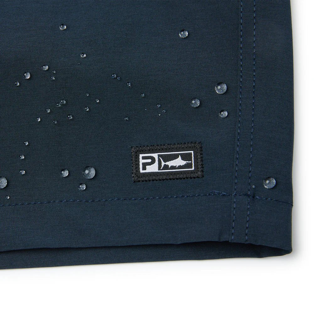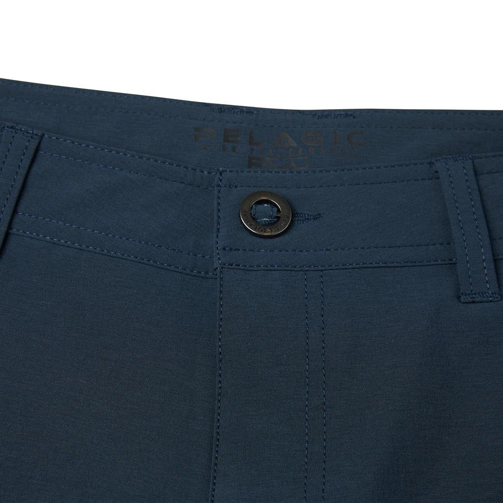 Catch the perfect wave with Pelagic's "Mako Deep Sea" Hybrid Shorts. Made from quick dry recycled 4-way stretch fabric, these chinos are perfect for everyday use. Plus, with PFAS free water and stain repellency, you can go from land to sea without worry. Equipped with mesh lined pockets and a utility pocket on the left leg, you'll be ready for any adventure.