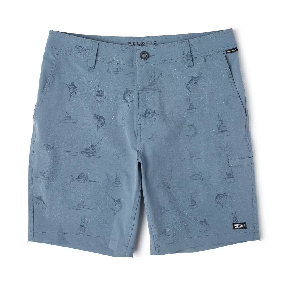 Dive into comfort with the Pelagic "Mako Deep Sea" Men's Hybrid Shorts. Crafted from quick-dry, recycled 4-way stretch fabric, these shorts keep you moving freely while resisting water and stains. Featuring mesh-lined pockets for breathability and a handy utility pocket, they’re perfect for everyday adventures. Plus, watch the water-activated print come to life when wet—adding a splash of fun to your day. With a 19" outseam and 8.5" inseam, these shorts blend style and function effortlessly.