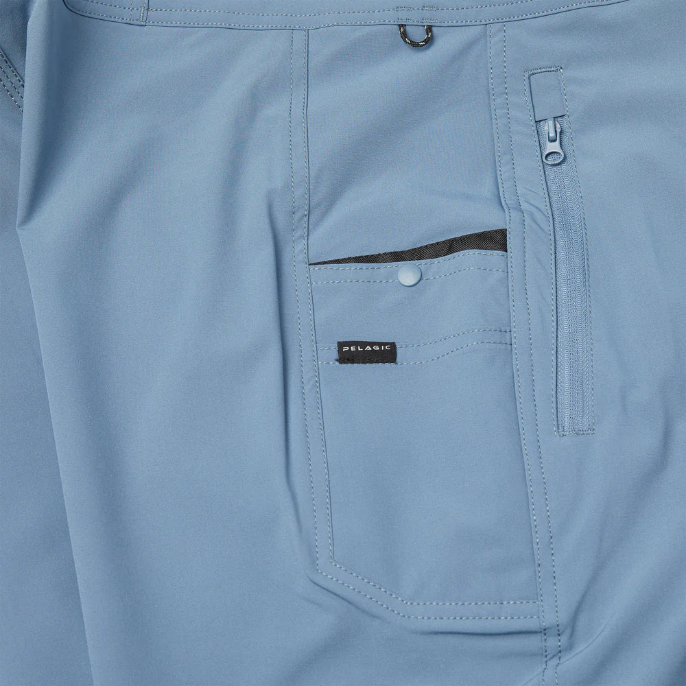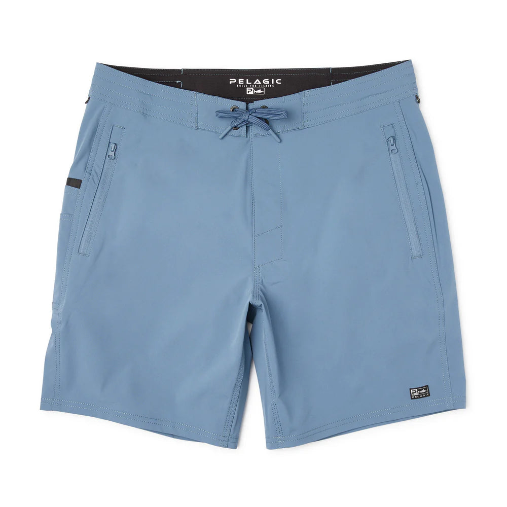 Experience all-day comfort on the water with the Pelagic Men's Leaderman Boardshorts. Crafted from durable, quick-dry recycled 4-way stretch fabric treated with PFAS-free water and stain repellency, these shorts keep you dry and clean amid the toughest conditions. Designed with reinforced snap plier pockets, secure zip hand pockets, and a tightlines waistband, they provide practical storage and a snug fit essential for serious anglers. Perfect for long hours fishing, the Leaderman combines performance and durability in a sleek petrol color.
