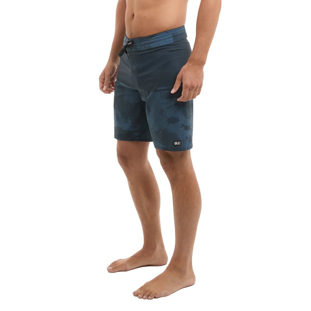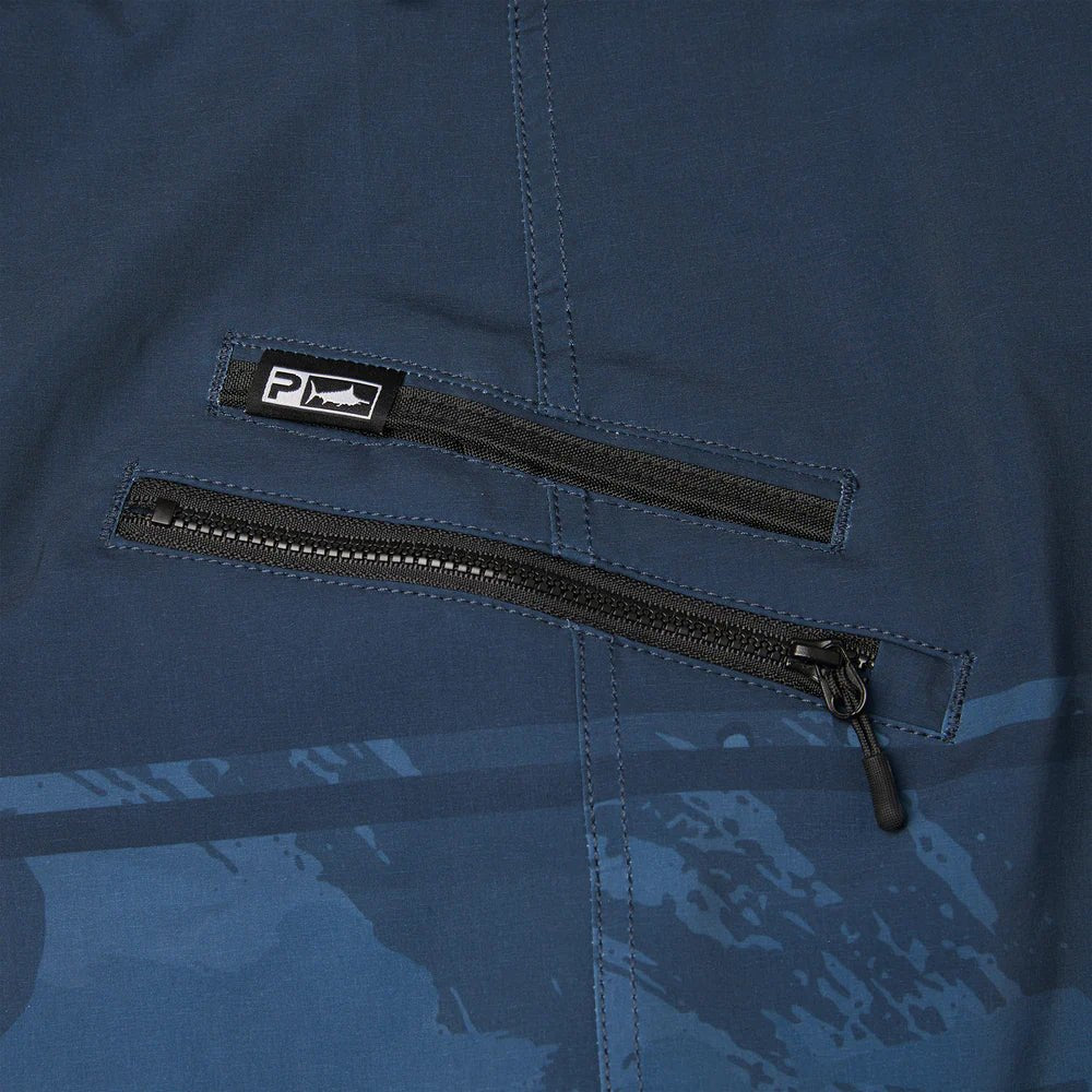 Designed for anglers who demand comfort and performance, the Pelagic "Strike" Men's Boardshorts 19" in Dark Navy are crafted from ultralight, quick-dry recycled fabric with four-way stretch. These durable shorts feature PFAS-free water and stain repellency to keep you fresh throughout long days on the water. Practical details like a reinforced plier pocket, zip stash pocket, and a secure tightlines waistband ensure your gear stays within reach and comfortable. Perfect for fishing adventures where mobility and utility matter most.