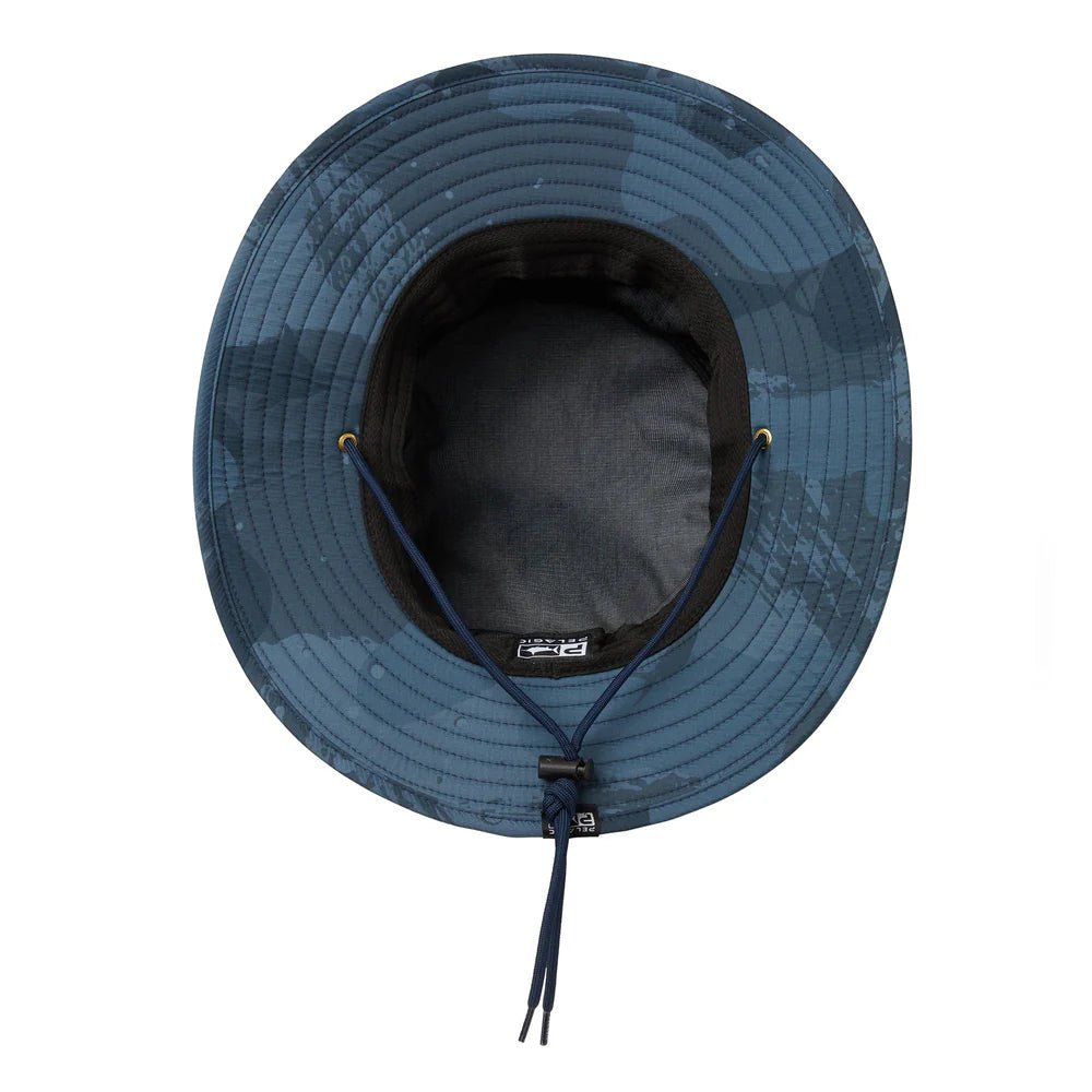 Essential sun protection for water enthusiasts, the Pelagic Sun Setter delivers lightweight comfort with a wide brim designed to shield you from intense UV exposure. Built with ultralight recycled polyester, a moisture-wicking headband, and adjustable straps, this hat keeps you cool and secure whether you're surfing, fishing, or spending long hours on the water.