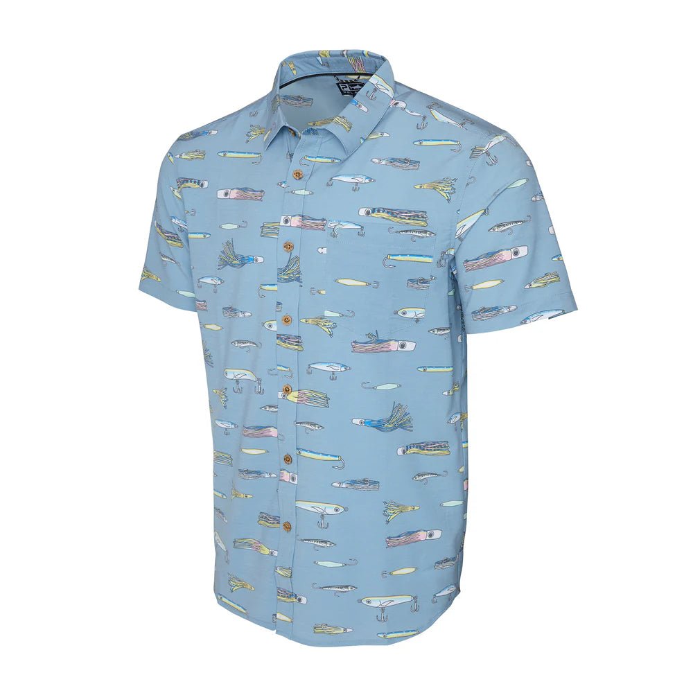 Experience the ultimate fishing companion with the Pelagic "Top Shot Lured" Men's Stretch Woven Shirt. This boldly designed Windward Blue shirt defies the elements with 50+ UPF protection while its recycled 4-way stretch fabric moves fearlessly with your body. Ultra-soft, quick-drying, and armed with water and stain repellency, it's ready for adventure when you are.