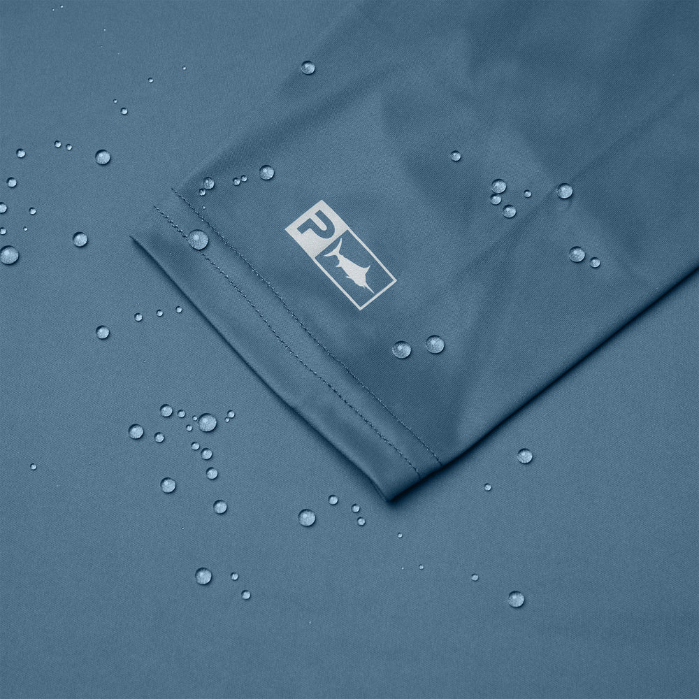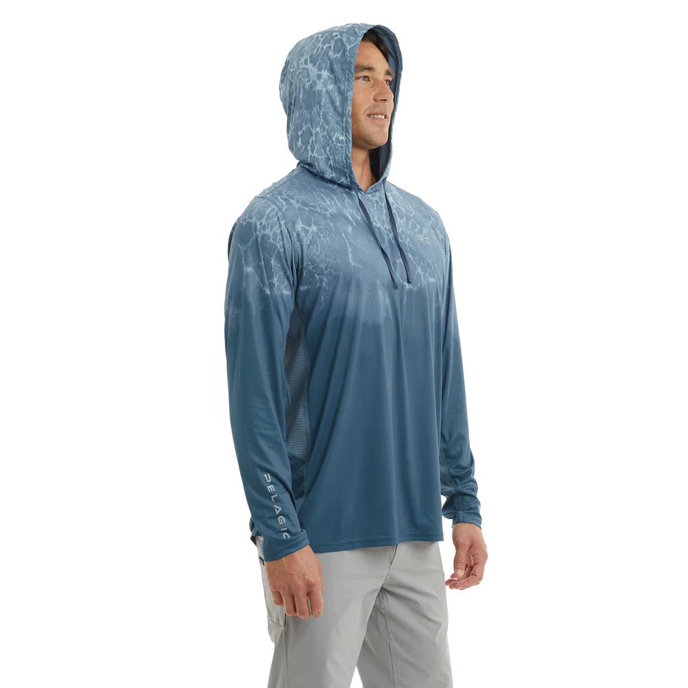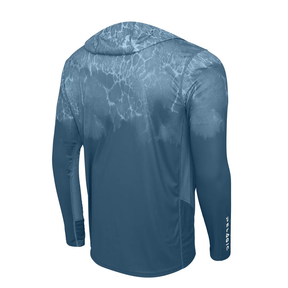 The Pelagic Vaportek Men's Hooded Fishing Shirt in Blue Fog offers exceptional sun protection with 50+ UPF, keeping you safe during long days outdoors. Crafted from ultralight, quick-drying recycled polyester, it ensures comfort and sustainability. The 4-way stretch fabric moves with you, while PFAS-free water and stain repellency keep you dry and clean. A drawstring hood and strategic ventilation enhance airflow, making this shirt ideal for active fishing in warm conditions.