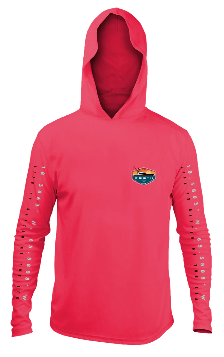 The Pez-K "Icacos" Men's Long Sleeve Hooded Rashguard offers everything you need for your water adventures. Featuring a protective hoodie-cap design and eye-catching graphics on both sleeves, this red rashguard combines style with functionality. The regular fit with stretch fast-dry fabric ensures comfort and mobility, while the distinctive front and back logo design adds a touch of personality. Perfect for keeping you covered and confident during all your aquatic activities.