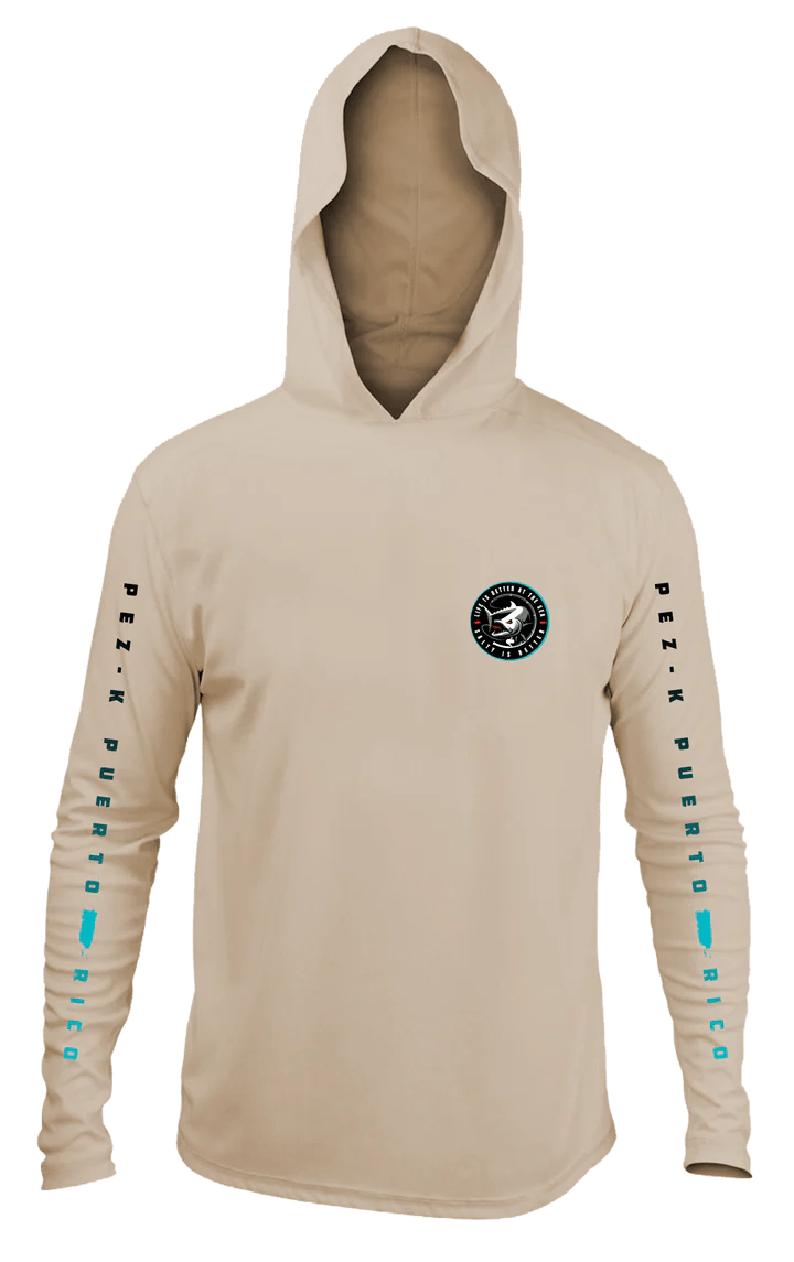 Pez-K "Wild Fish" Men's Long Sleeve Hooded Rashguard - Beige