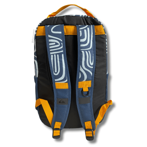 The Quiksilver 1969 Special Backpack in navy and mustard yellow offers practical organization with two front pockets, side mesh holders for bottles, and an internal laptop sleeve to keep your device secure. It also features a dedicated sunglass pocket and an accessory organizer inside the smaller front pocket, making it easy to carry and access your essentials throughout the day. Designed for convenience and durability, this backpack supports your active lifestyle with thoughtful storage solutions.