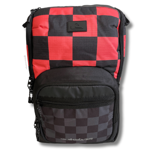 The Quiksilver School-E Chill 26L Backpack in black with red Checkers, offers organized storage with an internal laptop sleeve and a dedicated sunglass pocket. Keep your snacks fresh in the thermal insulated lines pocket, and easily access essentials with the front accessory organizer. Side mesh pockets provide convenient water bottle storage, making this backpack a reliable companion for school or daily adventures.