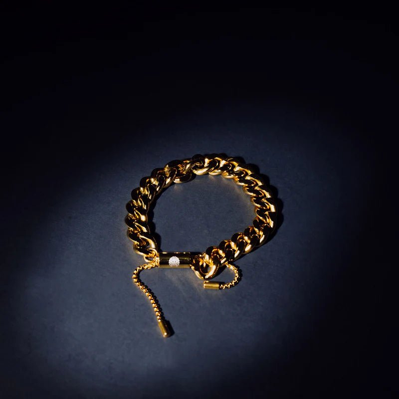 Classic 8mm Cuban link bracelet with 18k gold vermeil finish design available in S/m and M/L