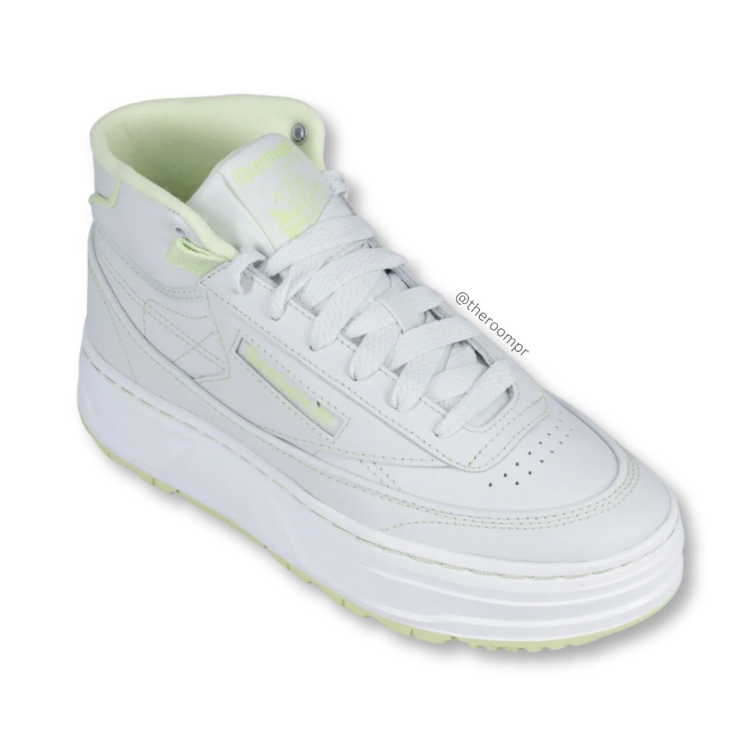 These Reebok "Club C Geo Mid" Women's Shoes are perfect for retro style lovers. Made with chalk pink leather, they have a flat heel and a durable rubber sole. Add a touch of vintage to your outfit with these cream and pink sneakers.