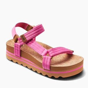 Add some tropical flair to your wardrobe with the Reef "Cushion Rem Hi" Women's Sandal in Malibu. These sandals feature a cushiony footbed with arch support and heel cupping, along with a genuine cork topsheet. Not to mention, the straps are made from 100% post-consumer plastic material, making them both stylish and eco-friendly. Perfect for any adventure!