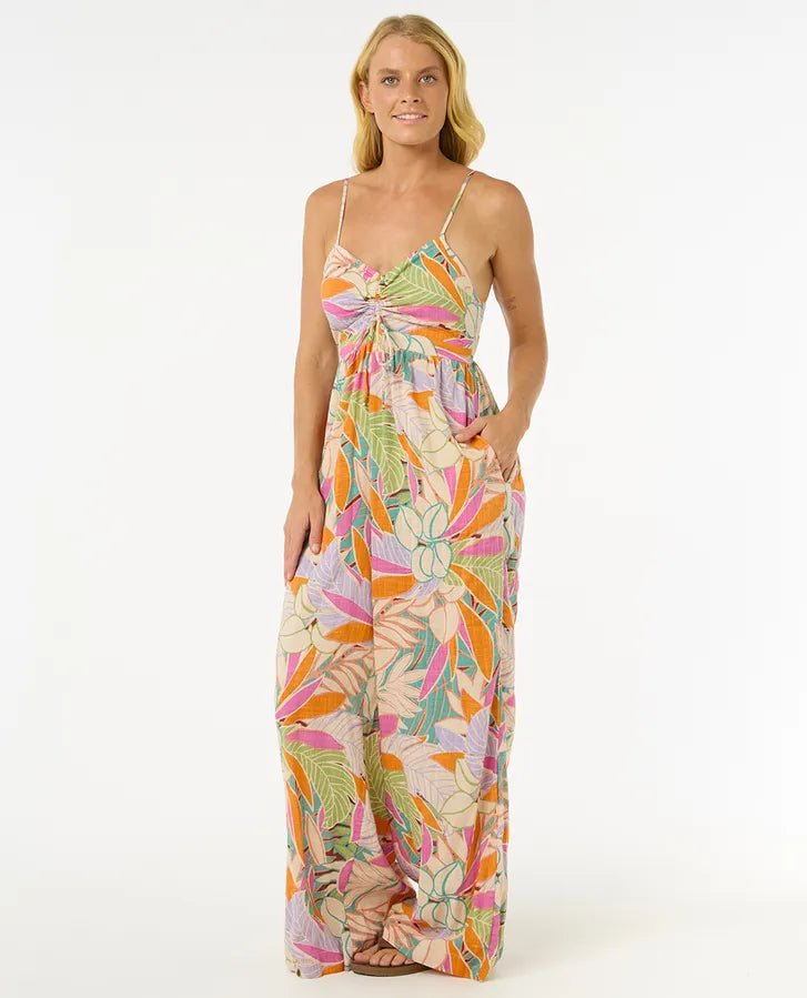 Stay stylish and comfortable on your next beach vacation with the Rip Curl Women's Cala Vadella Jumpsuit. This jumpsuit features a relaxed fit and a breathable, lightweight fabric that will keep you cool and fresh. The perfect blend of fashion and function for your summer wardrobe.