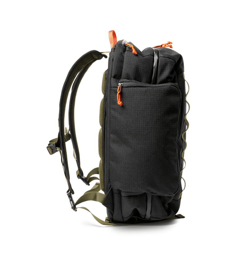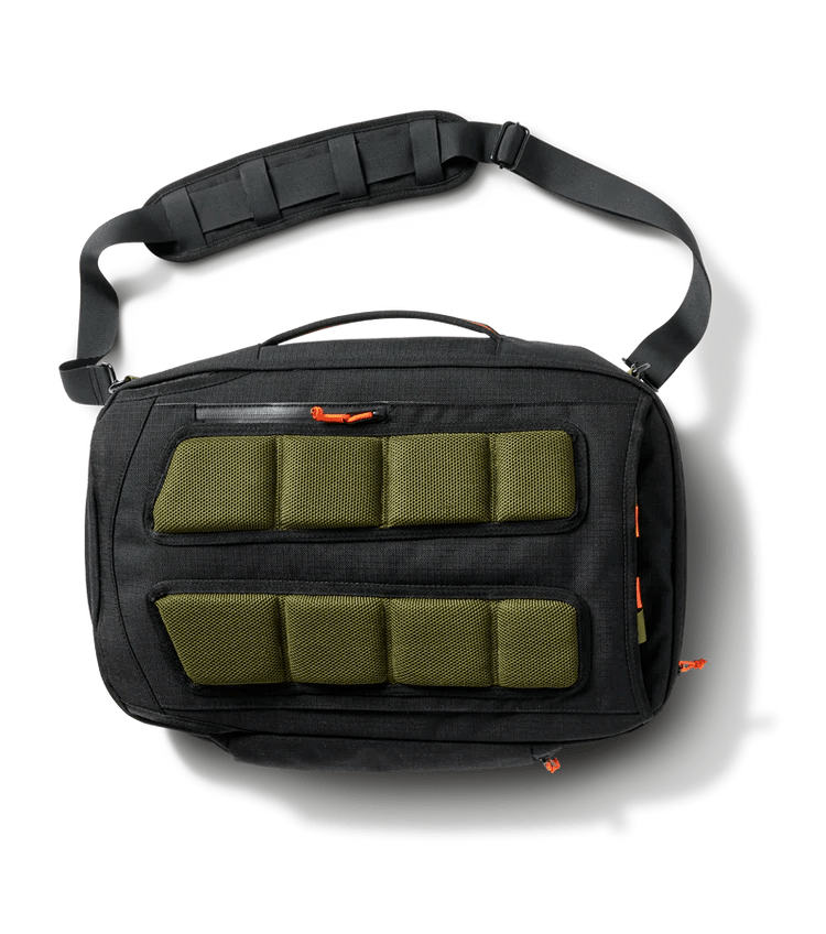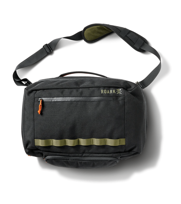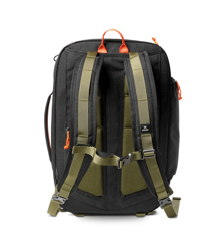 The Roark "3 Day Fixer" 35L Bag in black is designed to keep your essentials organized and accessible during short trips. Made from durable 1050 denier ripstop fabric, it features dual zipper compartments with mesh zip flaps to separate your clothes securely. A padded laptop pocket and a hidden passport pocket add convenience and protection for your valuables. With its comfortable carry design and thoughtful organization, this bag is ideal for frequent travelers seeking simplicity and reliability in a compact carry-on.