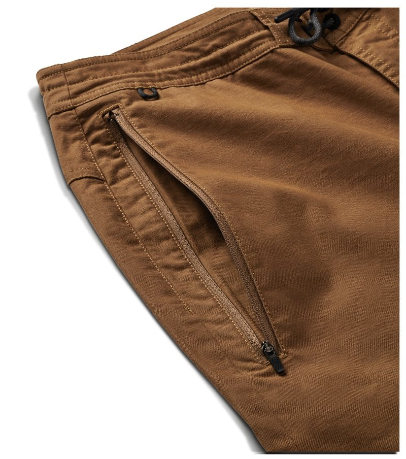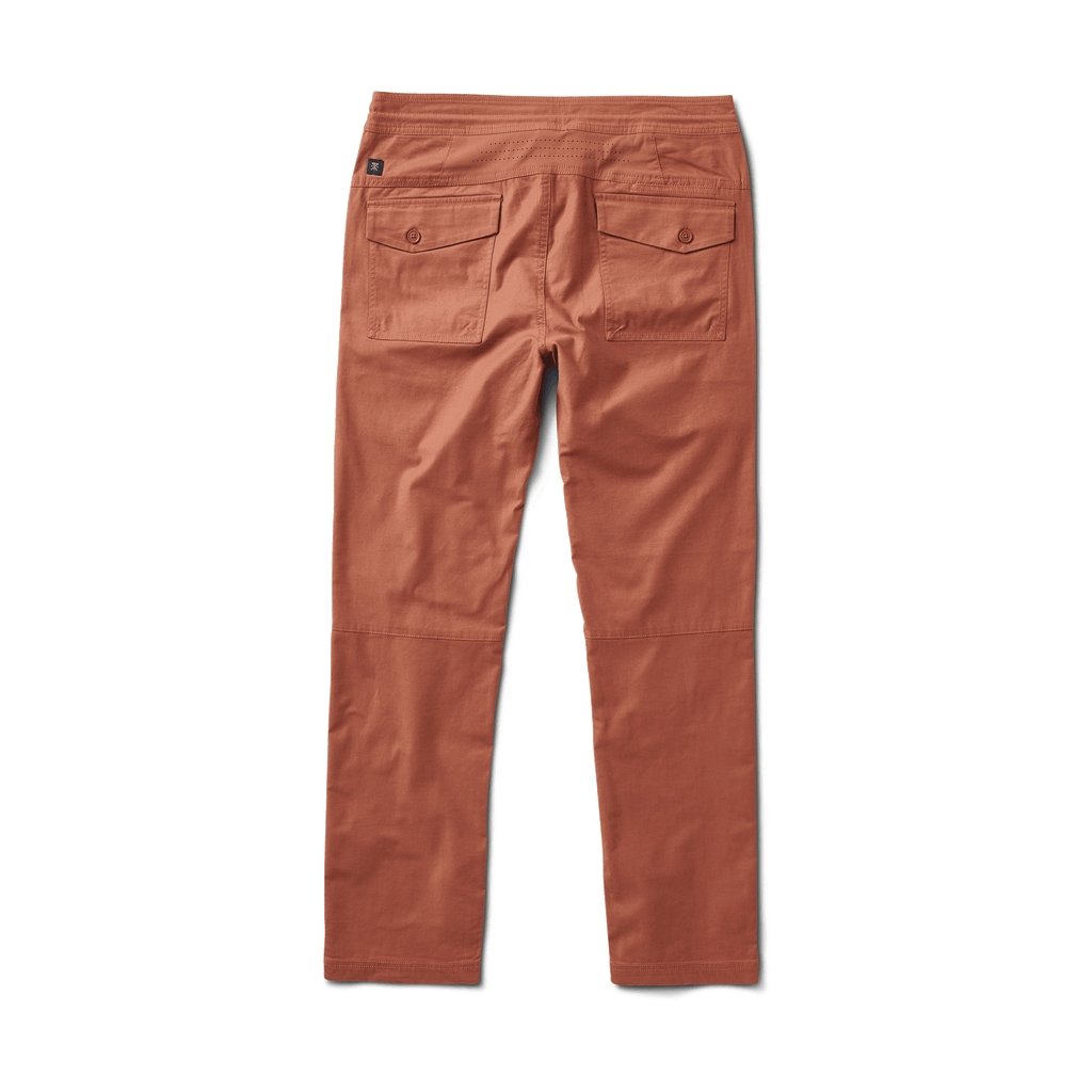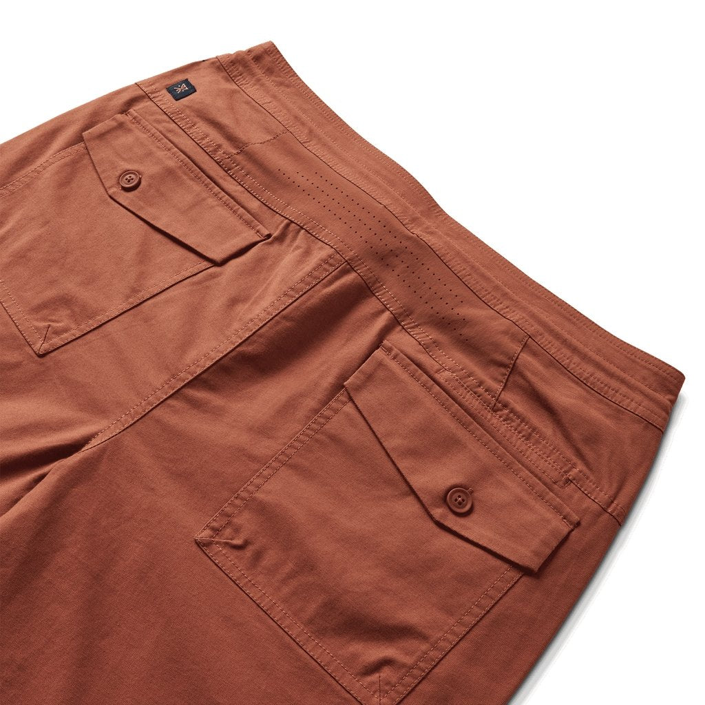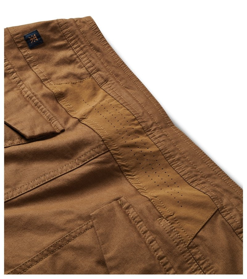 An evolved version of Roark's slim, straight fit, travel pant. Drawstring closure that wraps entire waistband with zipper fly, front extended long zip pocket with internal stash sleeve intended to accommodate all travel documents. Back patch pocket with button closure and small stash pocket at back yoke for quick cell phone storage.The back yoke vented mesh panel now constructed with laser cut perforations for breathability and comfort.