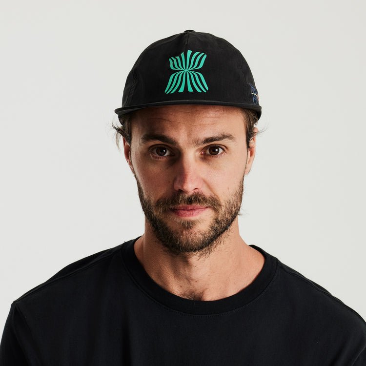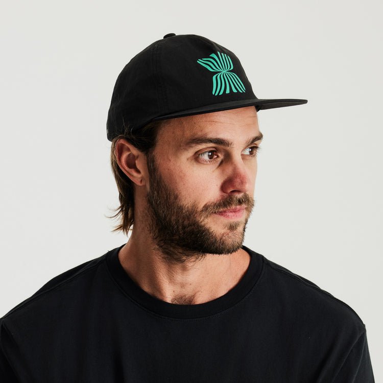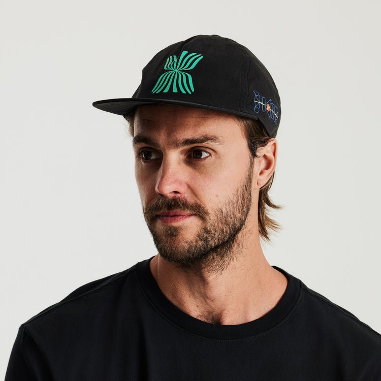 Stay cool and comfy while hitting the trails in our Roark "Run Amok" 5 Panel Snapback Hat - Time Drifter. With its snug fit and adjustable back, it's perfect for any outdoors runner. The unique design features a bold Time Drifter print, adding an extra touch of style to your outdoor adventures.