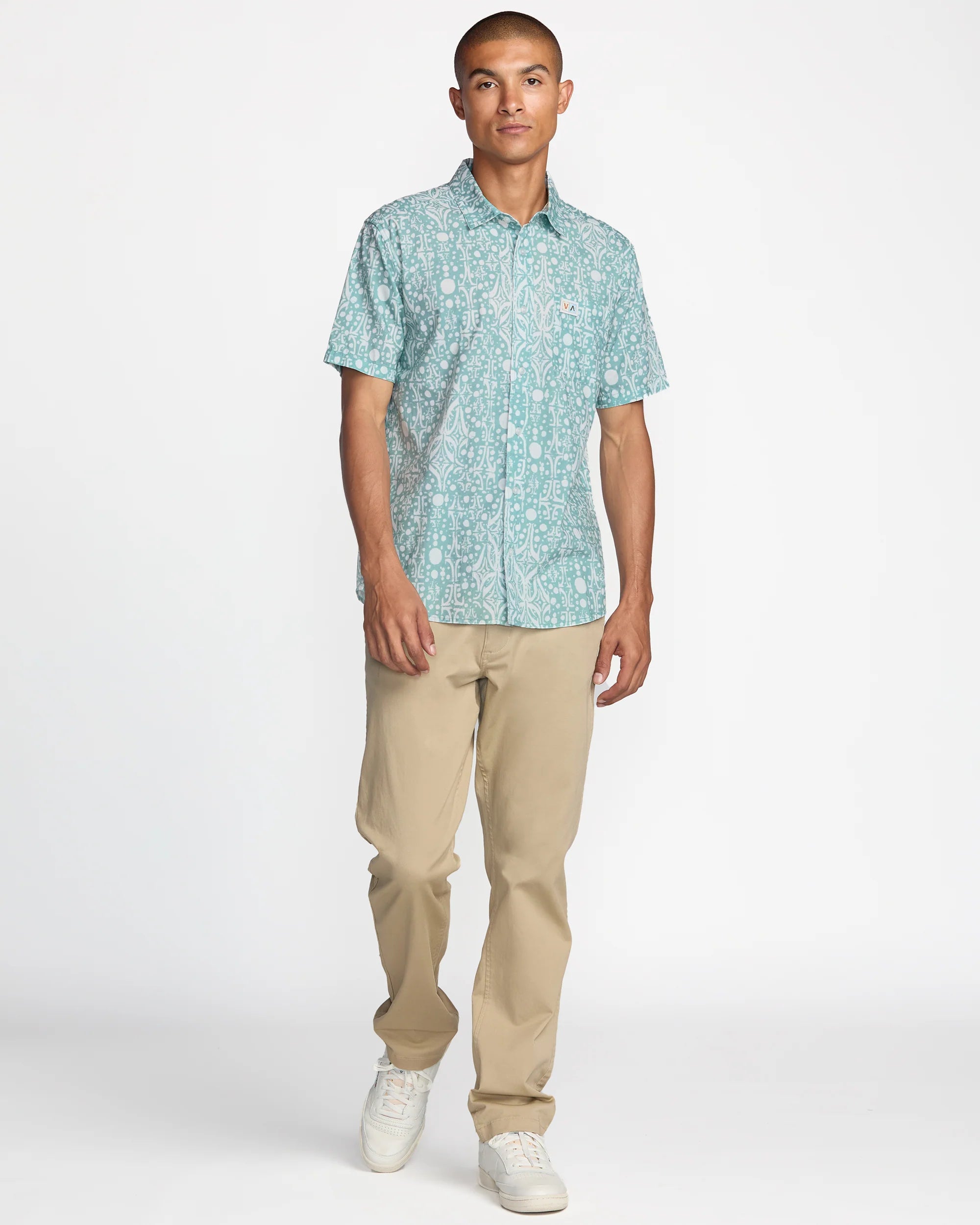 Elevate your wardrobe with the RVCA Jacobs Archive Print Short Sleeve Shirt in Blue Haze. Featuring a refined regular fit and a classic collar neck, this shirt showcases a distinctive print sourced from the RVCA archives, blending timeless style with contemporary appeal. Perfect for those who appreciate subtle sophistication in their casual attire.
