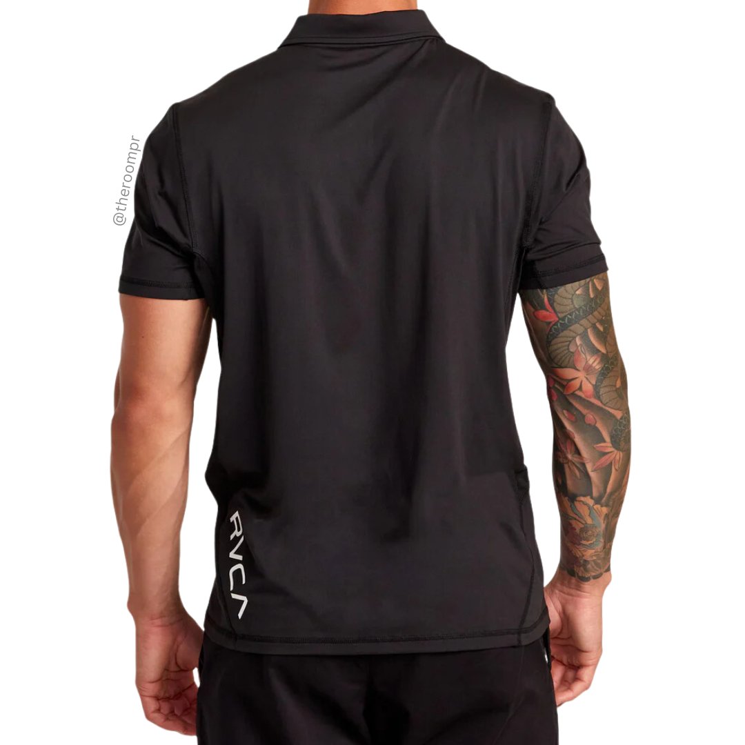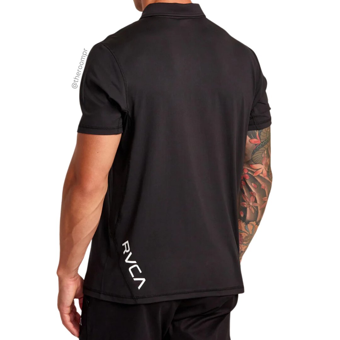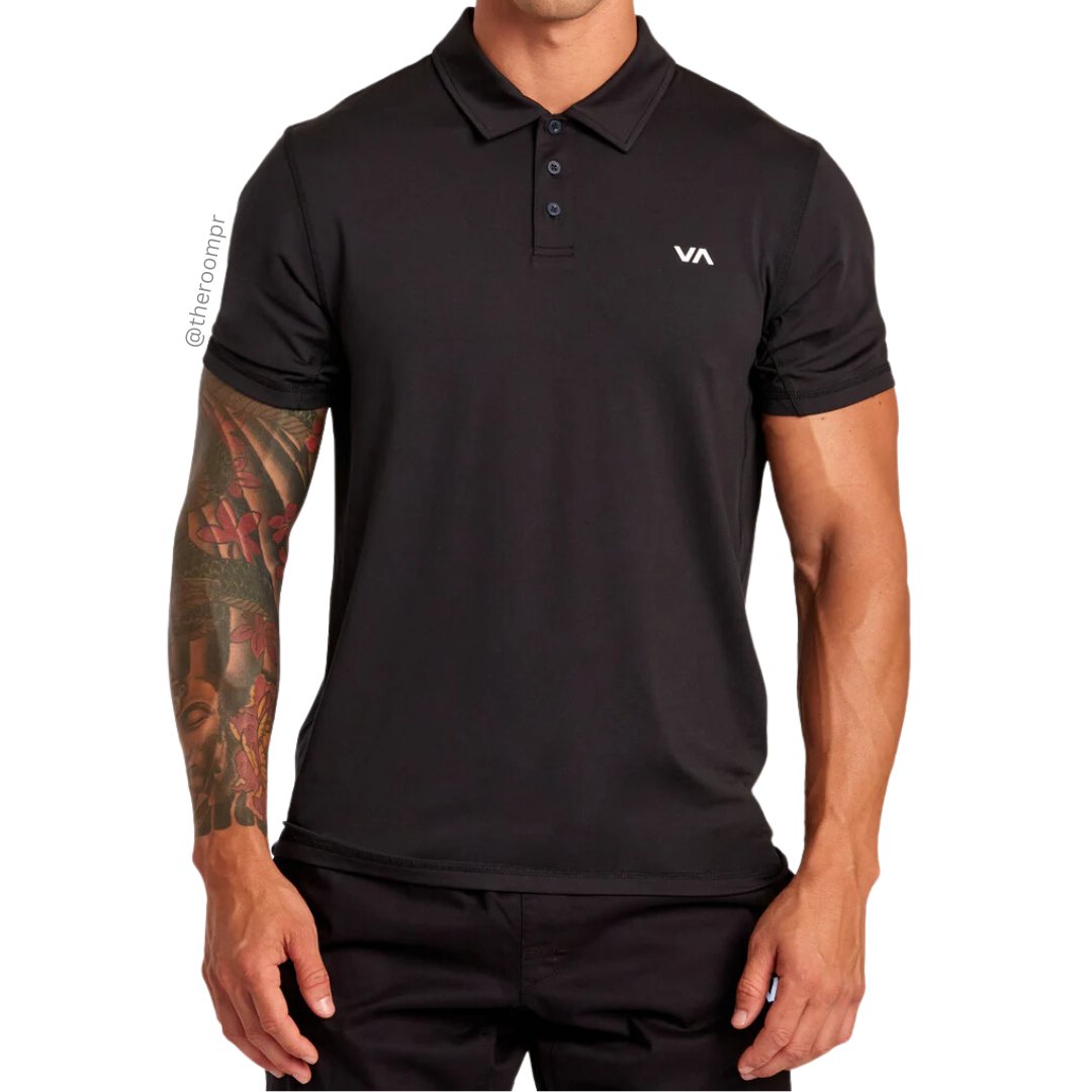 The RVCA "VA" Sport Vent Technical Polo Shirt in Black is your go-to performance shirt. Made with sweat-wicking fabric and 4-way stretch, this shirt keeps you comfortable and focused. The traditional collar and VA branding add a touch of sophistication to your athletic wardrobe.