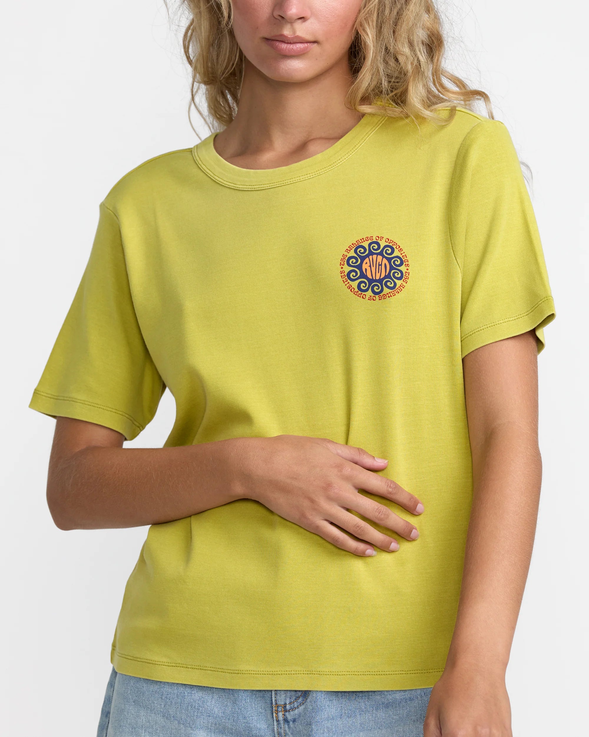 This tee is available in a vintage white tone; Click here to browse our RVCA Women's collection.