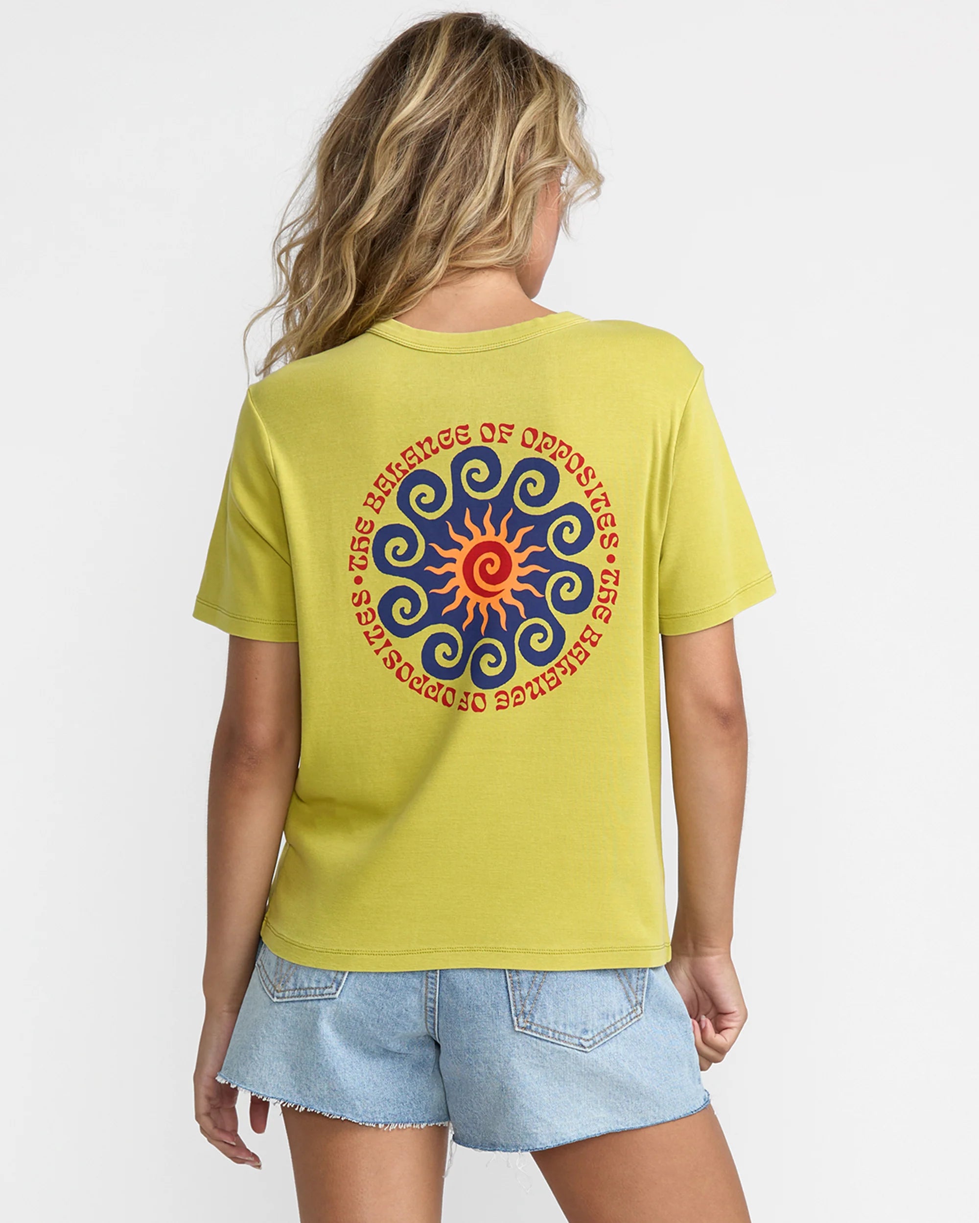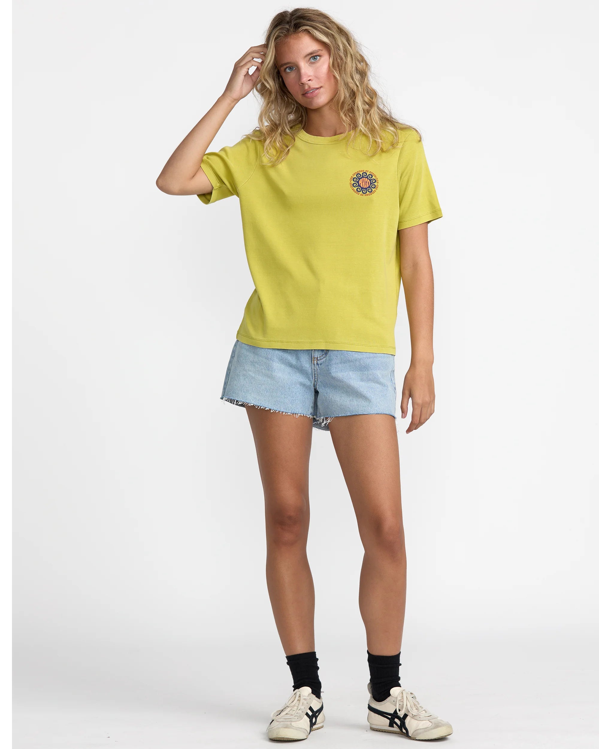 The RVCA Women's "Daily" Tee offers a comfortable, classic fit perfect for everyday wear. Made with soft, breathable fabric, it keeps you feeling fresh and confident all day long. Its timeless design pairs effortlessly with any outfit, making it a versatile addition to your wardrobe. Embrace comfort and style with this essential tee designed to support your active lifestyle.