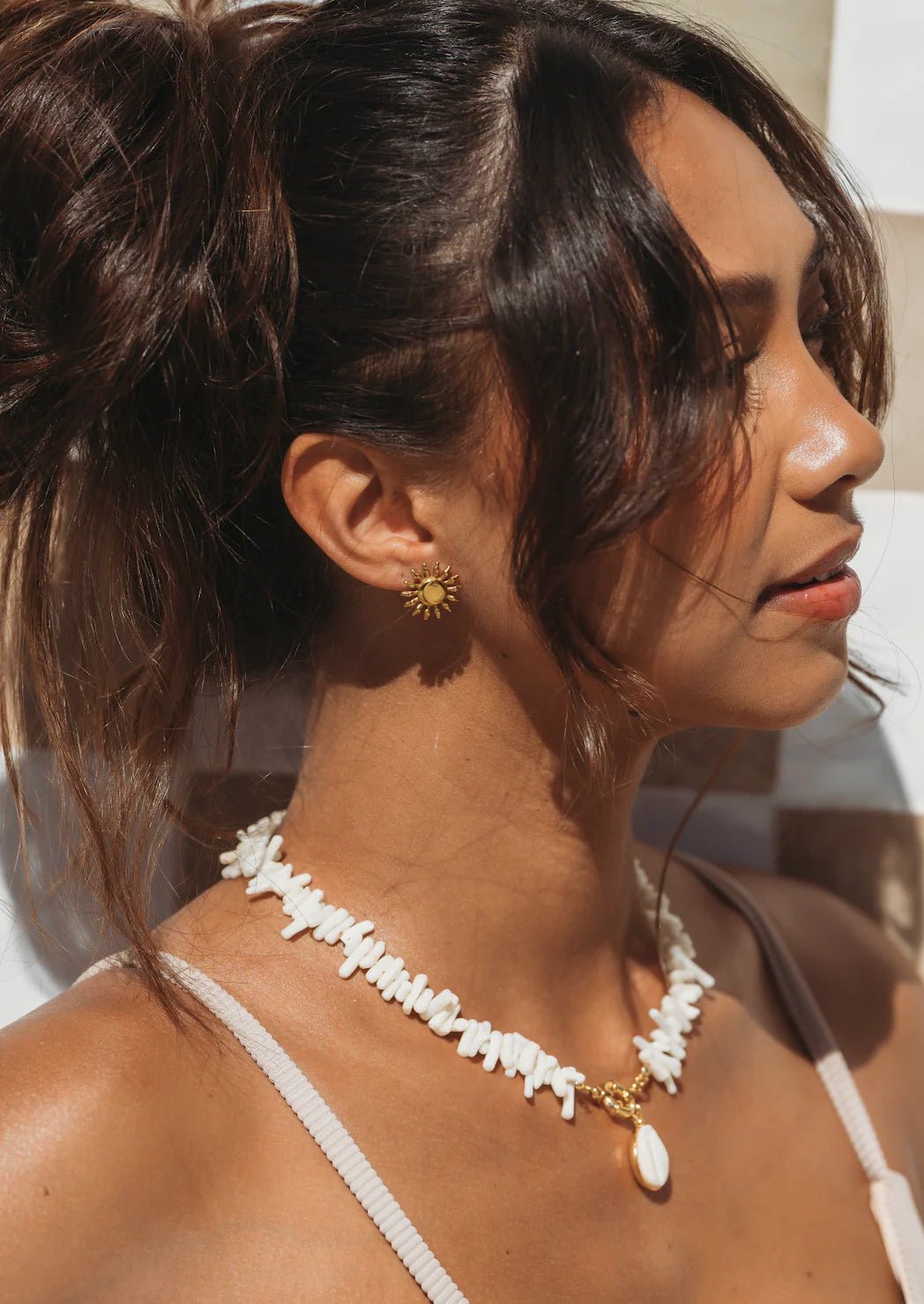 Catch the vibe of summer with this bold take on a classic. The Waimea Salty Shells necklace blends authentic puka shells with gleaming gold accents for an effortless coastal edge. Lightweight, colorful, and undeniably breezy; it's the perfect layering piece or standalone statement for anyone chasing that laid-back island aesthetic.