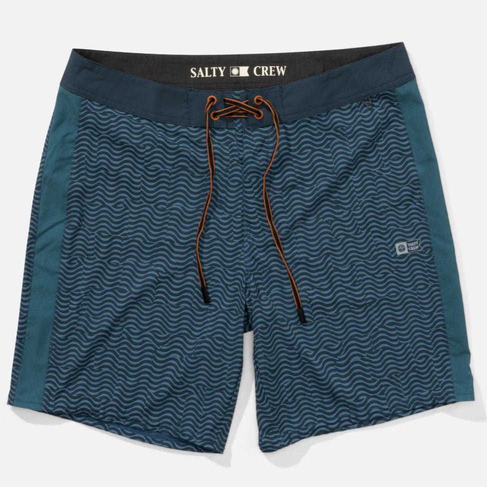 The Salty Crew Channel Apex Boardshort in Channel Blue offers an 18” outseam crafted from durable 90% nylon and 10% elastane fibers. Its 4-way stretch and quick-dry fabric ensure comfort and flexibility during water activities. Featuring perforated side panels for breathability, a secure back patch pocket with velcro closure, and an anti-rash interior with soft thread, these boardshorts provide lasting performance and protection for your active lifestyle.