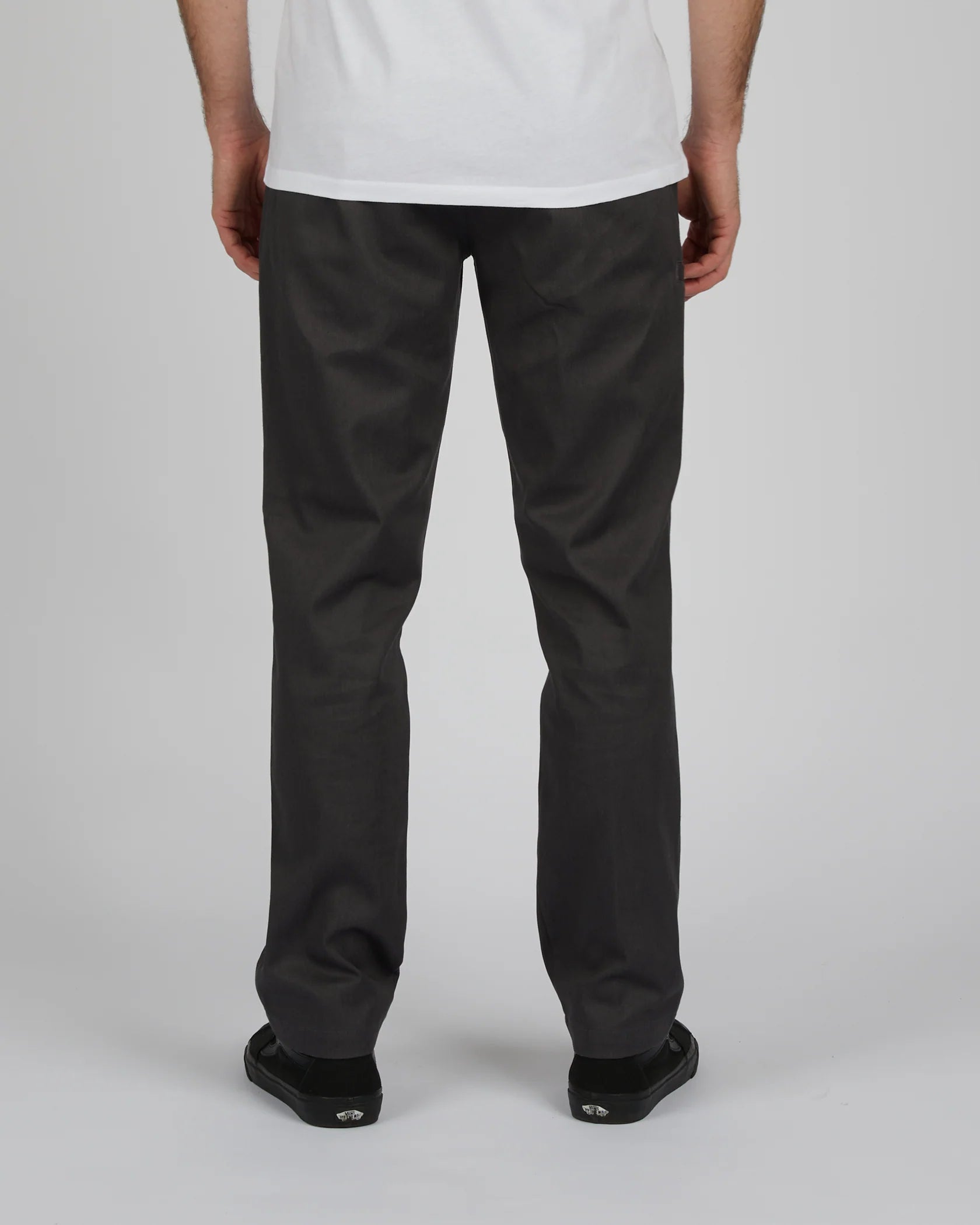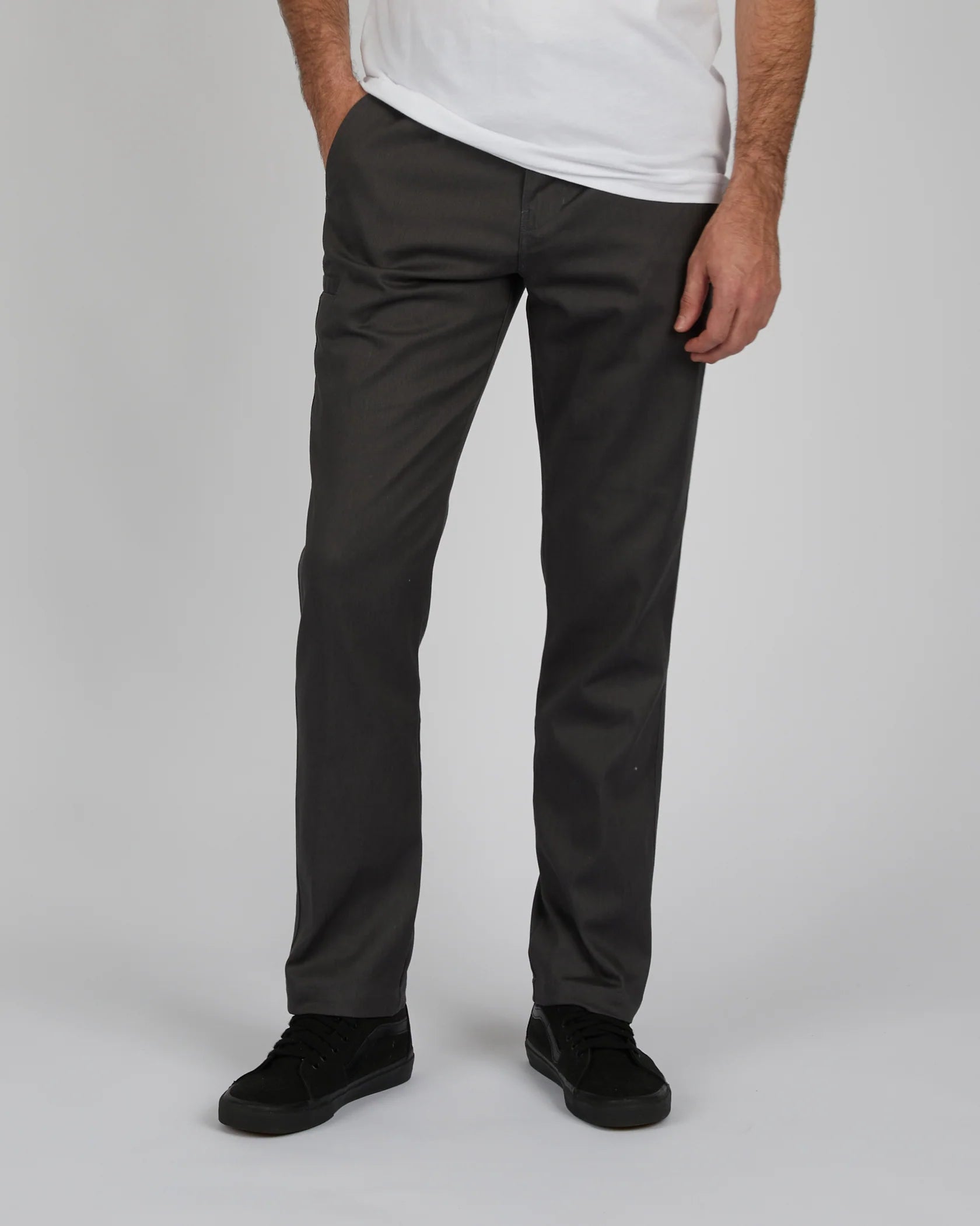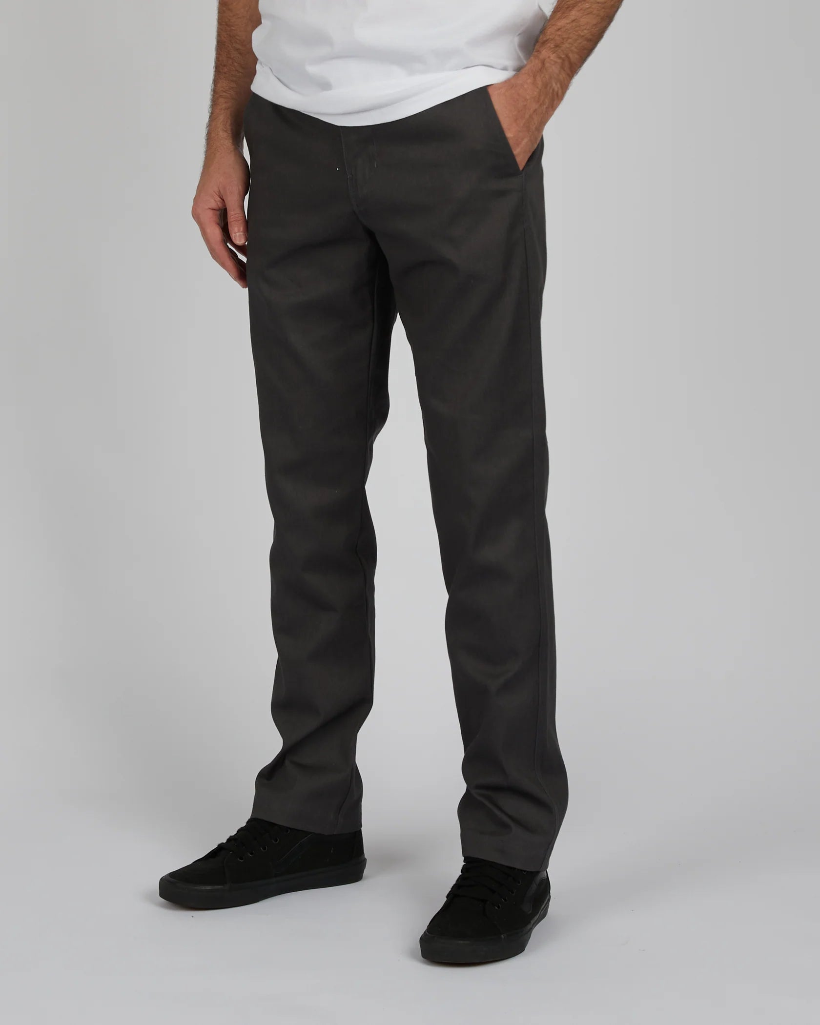 Designed for the modern waterman, the Salty Crew "Deckhand" Chino Pants in Black offer a 15" leg opening with a modern straight fit. These pants are made from a blend of 59% cotton, 39% Repreve polyester, and 2% elastane, providing both comfort and durability. The recycled performance fibers and 2-way stretch make these pants functional and eco-friendly. With a side seam utility pocket and reinforced triple-needle rise, these pants are perfect for everyday wear or your next adventure on the water.