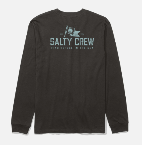 Embrace the coastal lifestyle with this Salty Crew Flag Day Long Sleeve Tee in classic black. Crafted from 100% cotton with a soft 30 singles spun construction, it delivers comfort that feels broken in from day one. Bold screenprinted graphics wrap the front, back, and sleeves, making a statement whether you're catching waves or hitting the streets.
