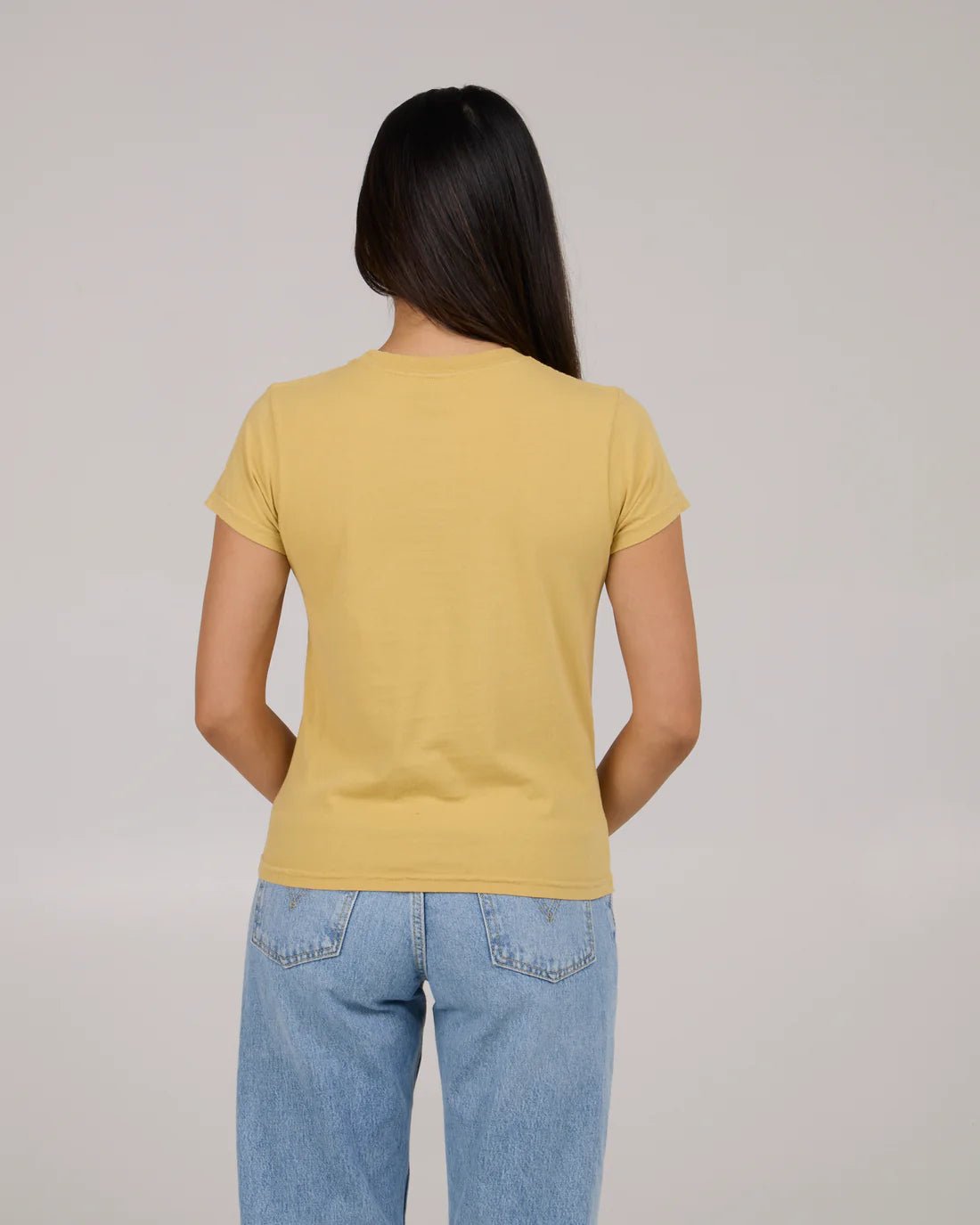 - Slightly fitted tee with cap sleeve and skimmer length body