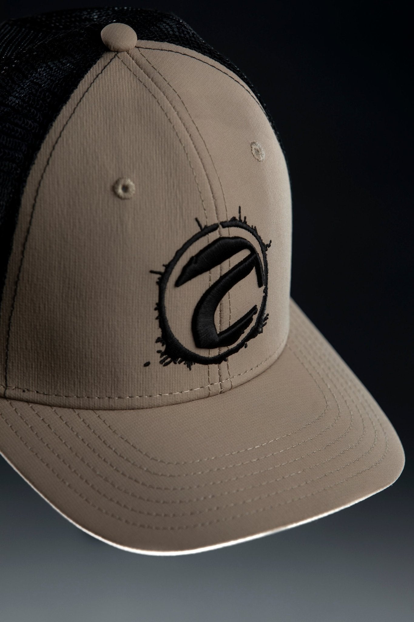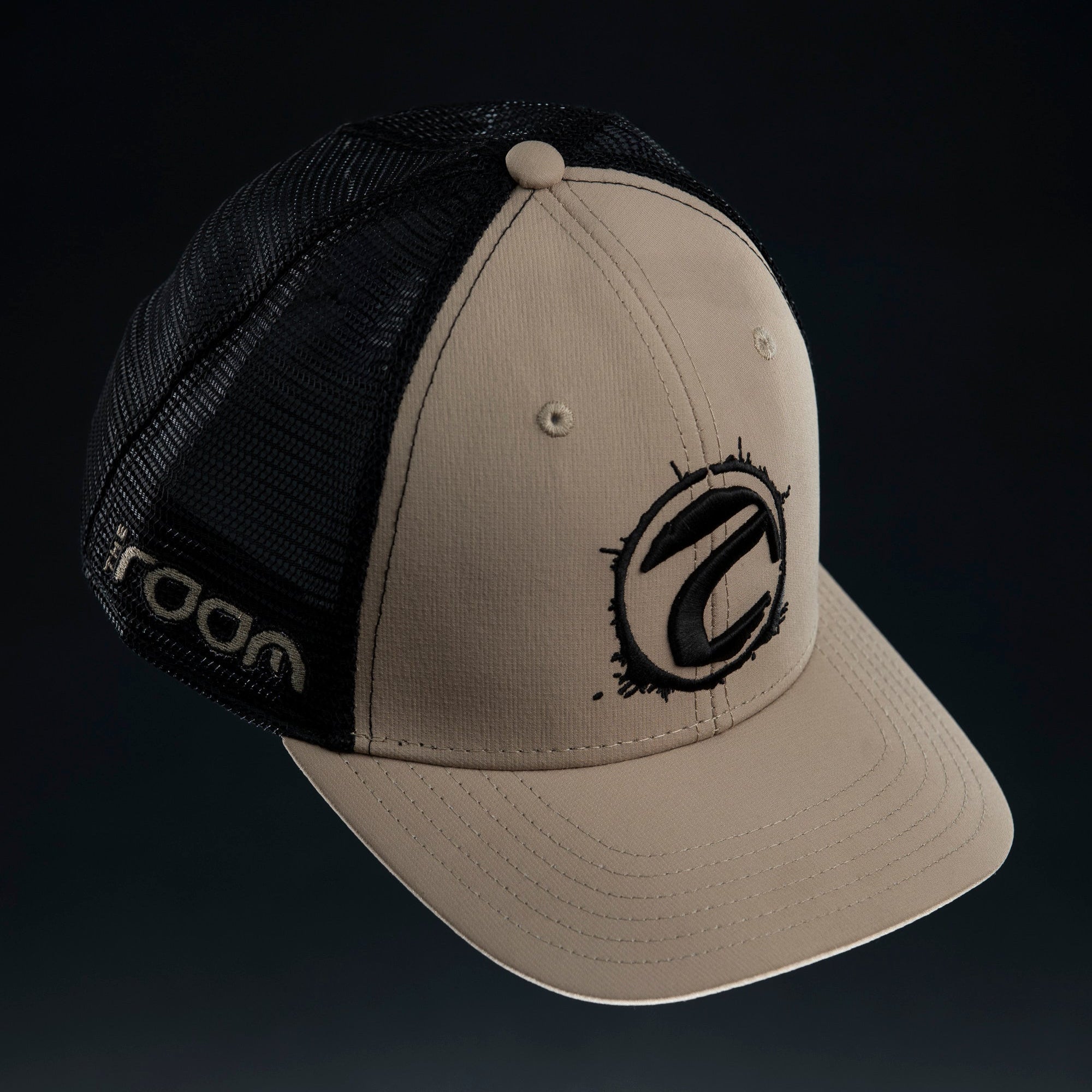 Stay stylish and comfortable with our premium Trucker Hat in a sandy' khaki color with black; designed for both fashion and function. Featuring our signature embroidered "splash" logo on the front, this hat adds a touch of personality to any outfit. The classic trucker-style mesh back ensures breathability, while the adjustable snapback closure provides a customizable fit for all-day comfort.