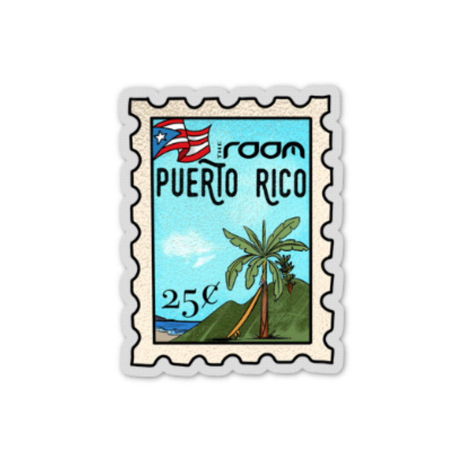Represent your island pride with this 2.2 inch sticker featuring a Puerto Rican view and The Room's signature logo. Crystal-clear background makes it perfect for water bottles, laptops, notebooks, car windows, or any surface that needs a dose of Caribbean style. Durable and weather-resistant, this sticker is ready to travel wherever your adventures take you.