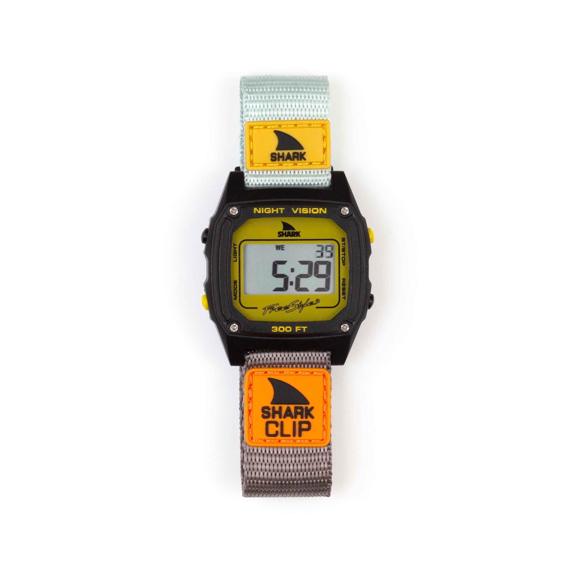 Experience retro-futurism with the Freestyle Shark Classic Clip Watch in Turq / Black and mustard. Its original clip band system, inspired by a seatbelt, ensures your watch stays secure, comfortable, and snug throughout your day. Designed for durability and backed by a limited lifetime warranty, this watch offers reliable protection and style you can trust.