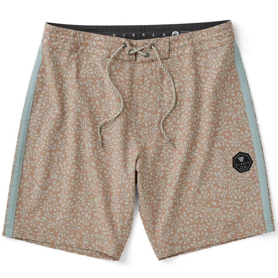 Experience comfort and style with the Vissla Jardin 18.5" Boardshort in Husk. Crafted from an eco-friendly blend of coconut-infused recycled polyester, cotton, and spandex, these boardshorts offer flexible 4-way stretch for unrestricted movement. Thoughtfully designed with a contrast side panel, back flap pocket, and integrated key rope, they keep your essentials secure while adding unique detail. Finished with a premium embroidered patch, these boardshorts support your passion for the waves with both performance and sustainability.