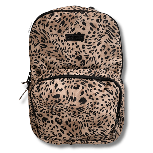 The Volcom "Upperclass" Backpack in bold leopard print measures 17.5" x 12" x 6", offering a fierce blend of style and function. Equipped with two side pockets and a front zippered pocket, it keeps your essentials within easy reach. A dedicated laptop compartment ensures your tech stays protected on the move. Make a statement while staying organized and ready for anything. Lunchbox sold separately.