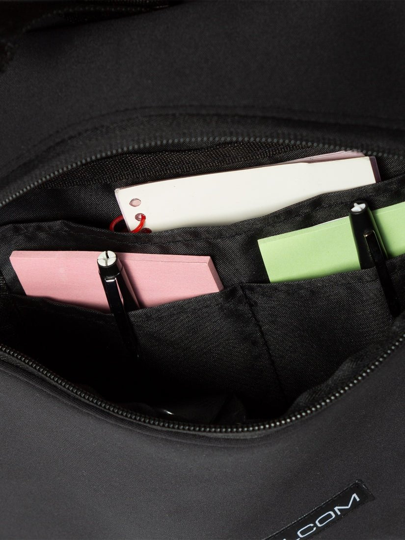 Take on any adventure with the Volcom "So Jaded" Backpack. Its sleek design features a large main compartment with easy access and cinched drawstring closure for security. Side pockets provide additional storage while the padded shoulder straps ensure comfort on the go. Finished with a woven logo patch, this pack is perfect for the outdoors enthusiast.